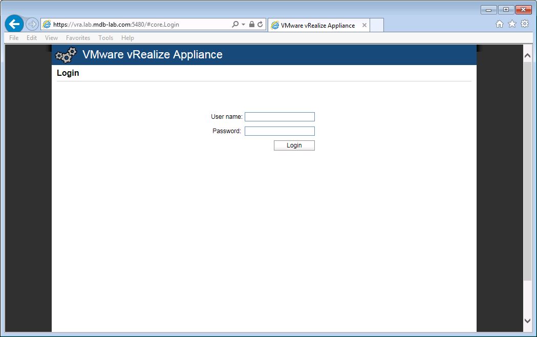 Open a web browser and navigate to https://vra.lab.mdb-lab.com:5480 (substitute accordingly):