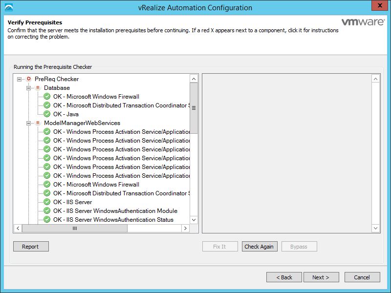 All tests should report as being satisfied. If not, remediate as necessary. Click Next >