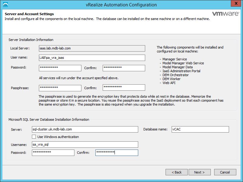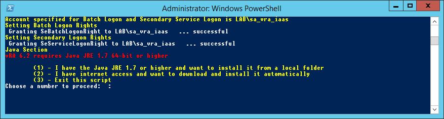Enter “LAB\sa_vra_iaas” (minus quotes) and press enter (substitute accordingly):