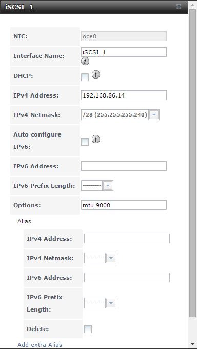 To enable jumbo frames in FreeNAS, select the interface in the GUI. In the options box, type mtu 9000: