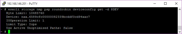 esxcli storage nmp psp roundrobin deviceconfig set -d $DEV -t iops -I 1