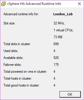 Recently I was asked to perform a VMware environment review for a financial services customer of ours. This involved reviewing a number of settings across the estate, one of which being resource utilisation. The biggest challenge was to ensure that none of the customer’s clusters were over subscribed, meaning that in the event of a HA failover, virtual machines would fail to power on as expected.