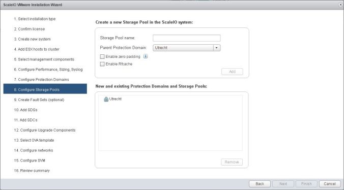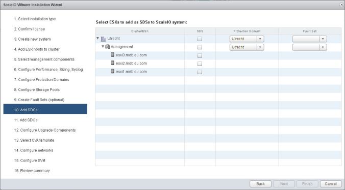 It could be argued that for a three-node cluster, it takes a lot of components to get the solution up and running. An SDC, SDS, MDM… and that’s all per host. Plus a gateway. That’s a lot of components that need to be provisioned, that VSAN takes care of by itself. It’s worth adding that only one ScaleIO virtual machine is deployed to each host, running the necessary components.
