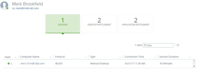 To access the tool, append “/helpdesk” to your View Connection Server/load-balancer URL. Once you’re logged in, find the user you’re trying to support to view their desktop statistics in realtime: