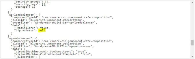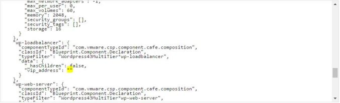 Scroll down and look for vip_address. In the above screenshot you can see the default is a pair of double quotation marks. Replace this with null: