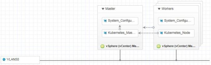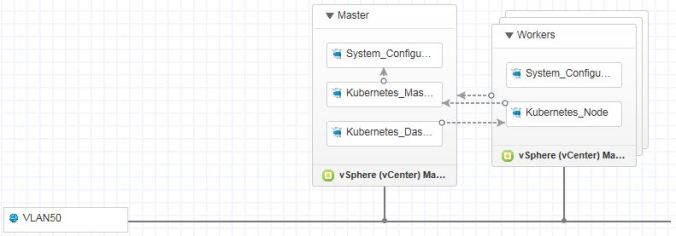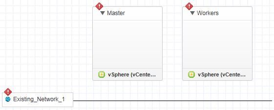 Drag two vSphere machines onto the canvas. Name one Master and the other Workers. Also include a network of your choice: