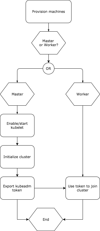 The blueprint we will create in this post will consist of multiple machines running Linux (in my case, CentOS). It will then deploy one Kubernetes master and a number of worker nodes. Each machine will run a script (software component), which based on the role assigned to it, will install and configure the relevant software.