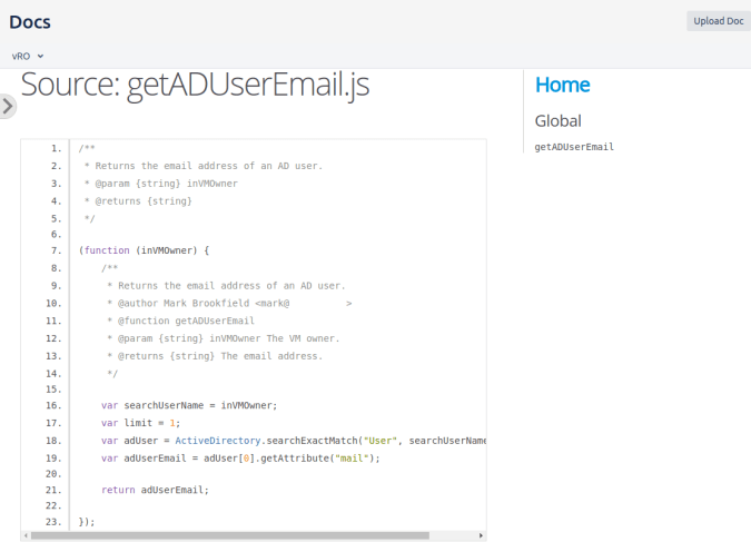 Here you will see the description, the inputs and what the action returns. To see the code, click the link to the Javascript source: