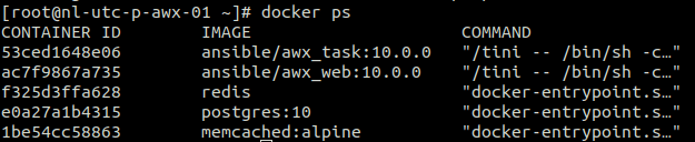 This will list your AWX containers. Take a note of the container ID for the awx_task and awx_web containers: